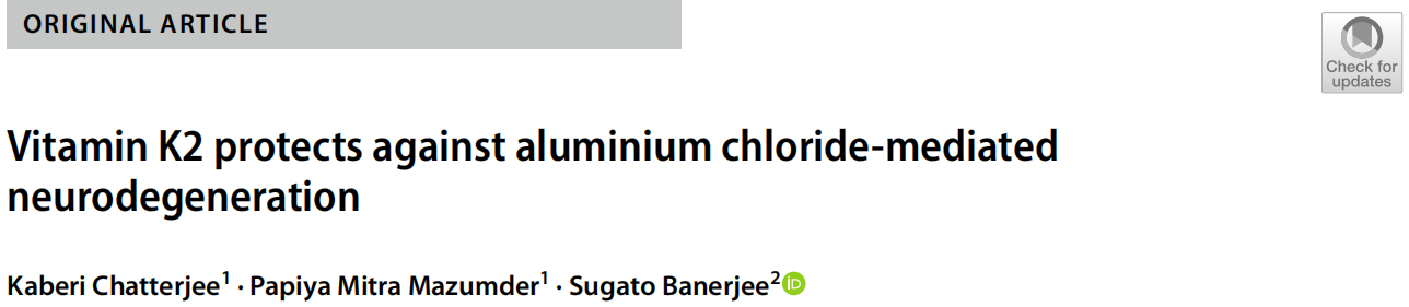 Chatterjee K, Mazumder PM, Banerjee S. Vitamin K2 protects against aluminium chloride-mediated neurodegeneration. Inflammopharmacology. 2023 Jul 21. doi: 10.1007/s10787-023-01290-1.